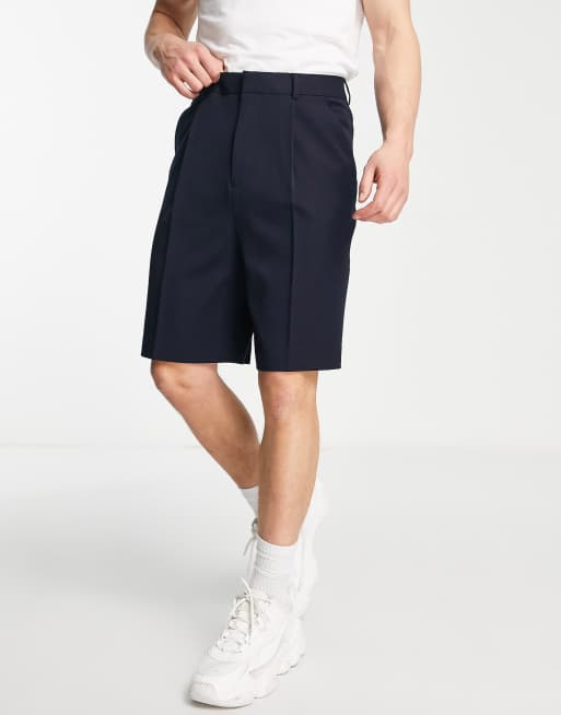 Pantalones cortos de vestir azul marino de pernera ancha de ASOS DESIGN