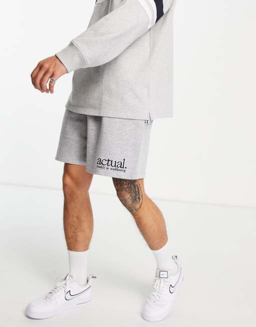 Pantalones cortos gris jaspeado de estilo baloncesto con logo estampado de ASOS Actual (parte de un conjunto)