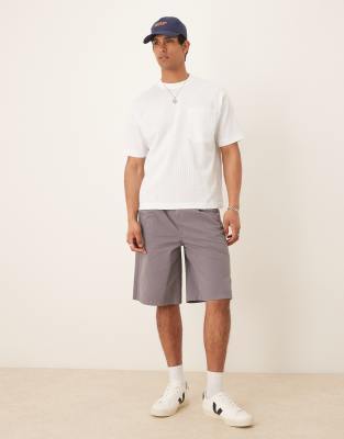 Pantalones cortos grises de corte alargado con pinzas de ASOS DESIGN