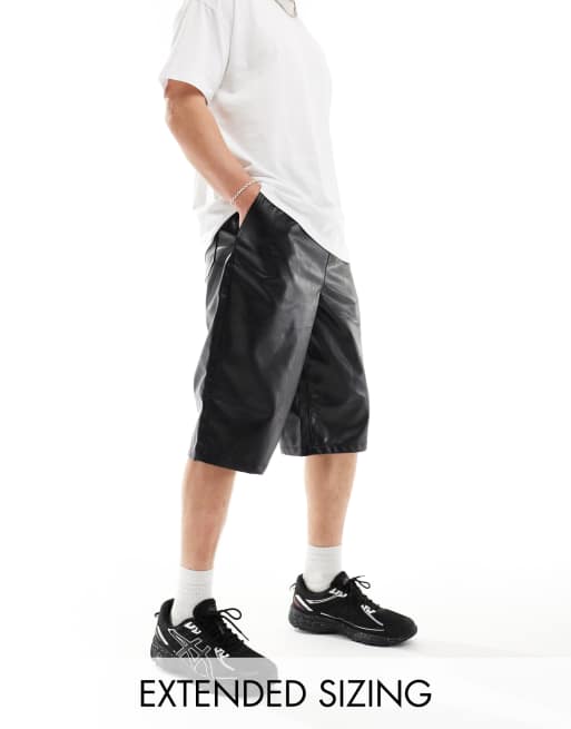 Pantalones cortos negros de corte alargado de cuero sintético de ASOS DESIGN