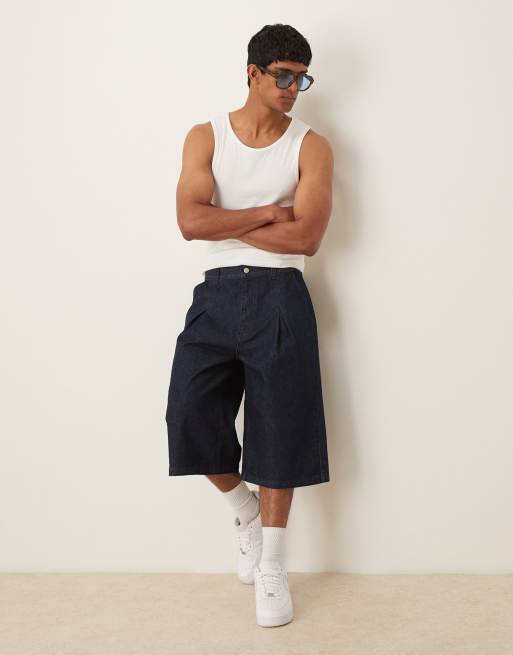 Pantalones cortos vaqueros de corte alargado con lavado crudo y detalle de pinzas de ASOS DESIGN