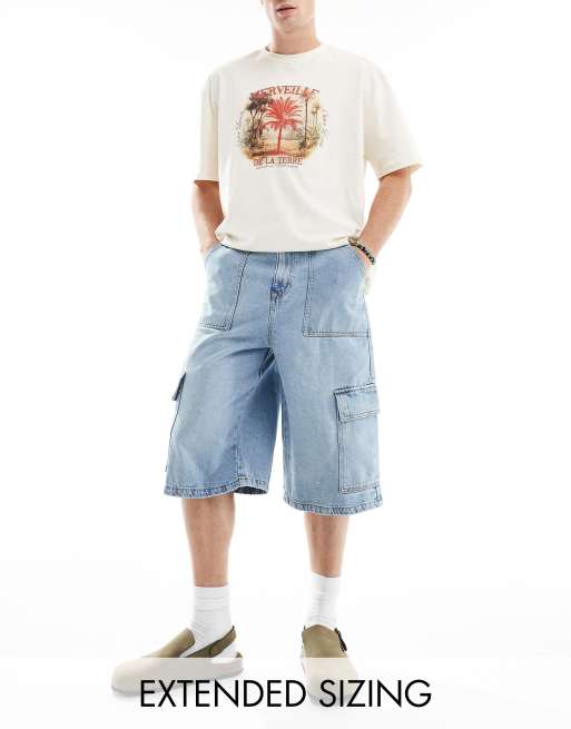 Pantalones cortos vaqueros de corte muy alargado con lavado azul claro y detalles cargo de ASOS DESIGN