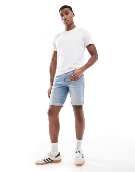 Pantalones cortos vaqueros de corte slim recto con lavado azul claro de ASOS DESIGN