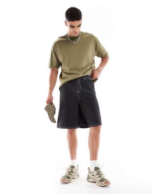 Pantalones cortos vaqueros negro lavado de corte alargado con bolsillos traseros bordados de ASOS DESIGN
