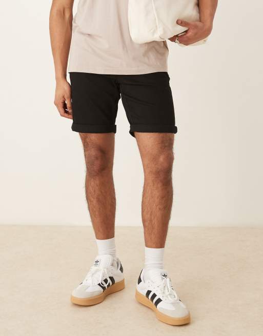 Pantalones cortos vaqueros negros elásticos de largo estándar y corte slim de ASOS DESIGN