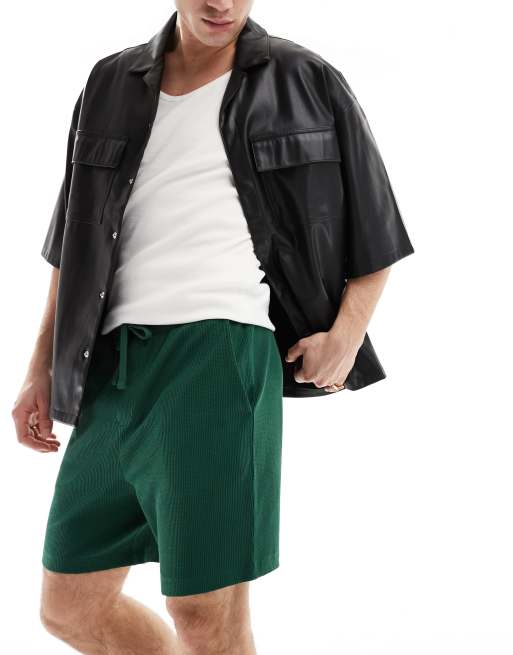 Pantalones cortos verde oscuro de corte slim de punto de arroz de ASOS DESIGN