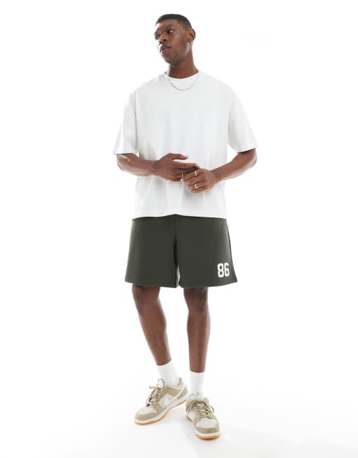 Pantalones cortos verde oscuro extragrandes con estampado de número de ASOS DESIGN