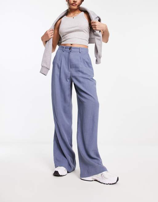 Pantalones dad azules de pernera ancha de mezcla de lino de ASOS DESIGN