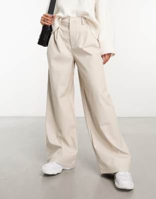 Pantalones dad blanco invierno de pernera ancha de cuero sintético de ASOS DESIGN