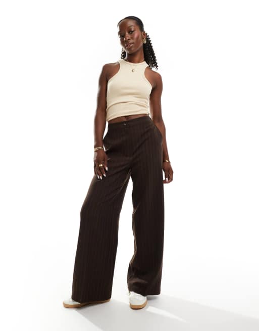 Pantalones dad de sastre marrón chocolate de pernera ancha de ASOS DESIGN