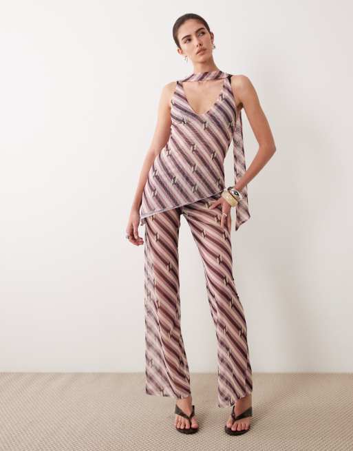 Pantalones de campana estampados de malla de ASOS DESIGN (parte de un conjunto)