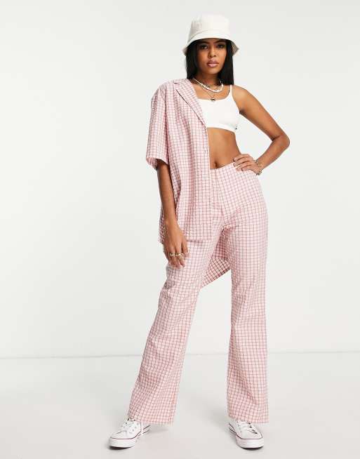 Pantalones de campana rosas a cuadros de estilo casual de ASOS DESIGN (parte de un conjunto)