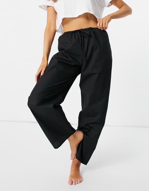 Pantalones de pijama negros de popelina de algodón de ASOS DESIGN