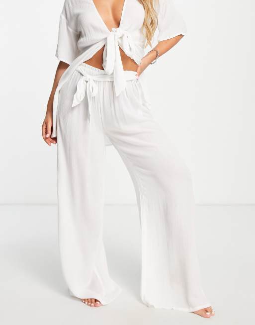 Pantalones de playa blancos de estilo palazzo con lazada en la cintura de ASOS DESIGN