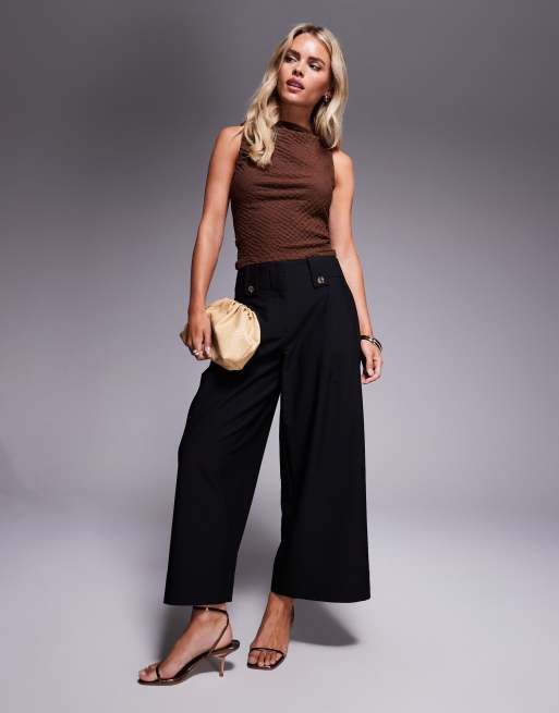 Pantalones de sastre capri color sésamo con detalle de trabillas en la cintura de ASOS DESIGN Petite