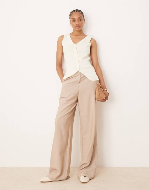 Pantalones de sastre color piedra de pernera recta holgada de ASOS DESIGN Tall