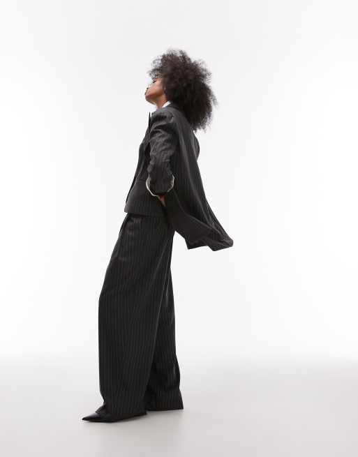 Pantalones de sastre gris carbón de talle alto con raya diplomática y pinzas de ASOS DESIGN