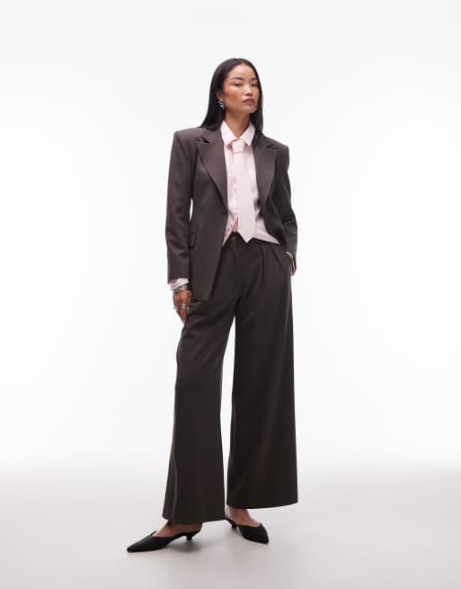 Pantalones de sastre marrón chocolate de talle alto con raya diplomática y pinzas en la parte delantera de ASOS DESIGN
