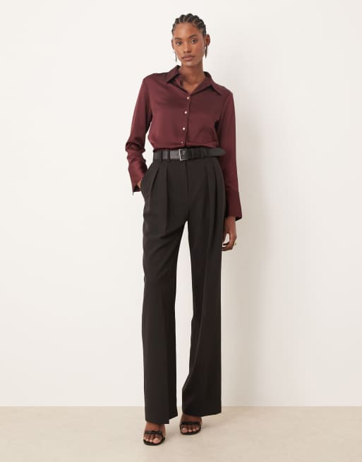Pantalones de sastre negros de pernera ancha con cinturón y detalle de pinzas de ASOS DESIGN Tall