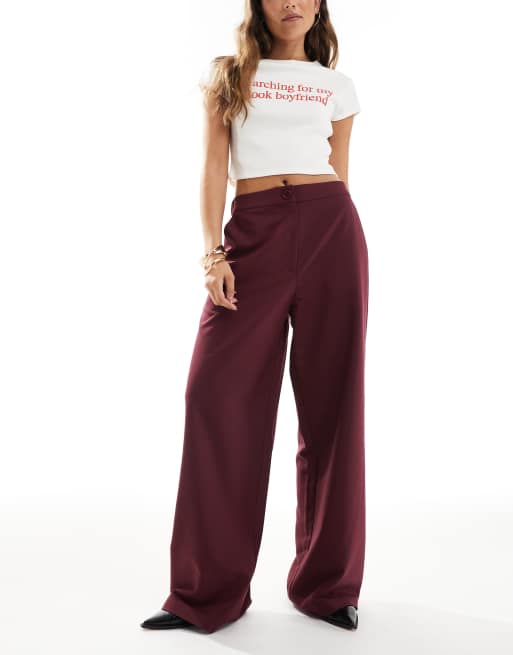 Pantalones de sastre rojo cereza oscuro de pernera recta holgada de ASOS DESIGN