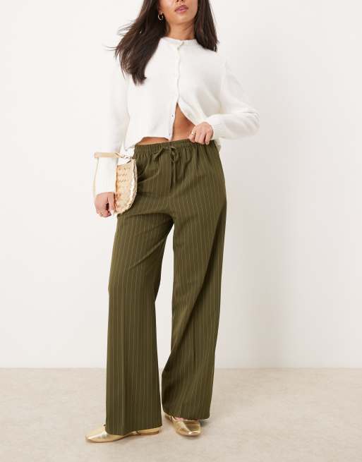 Pantalones de sastre verde oliva a rayas sin cierres de ASOS DESIGN