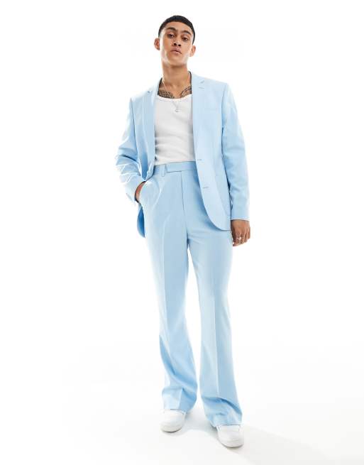 Pantalones de traje azul aciano de corte acampanado y talle alto de ASOS DESIGN