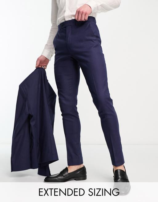 Pantalones de traje azul marino de corte pitillo de mezcla de lino de ASOS DESIGN