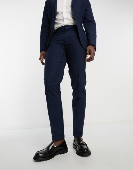 Pantalones de traje azul marino de corte slim con textura flameada de ASOS DESIGN