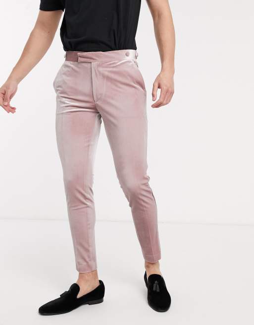 Pantalones de traje esmoquin muy ajustados en tercipelo rosa polvareda de ASOS DESIGN wedding