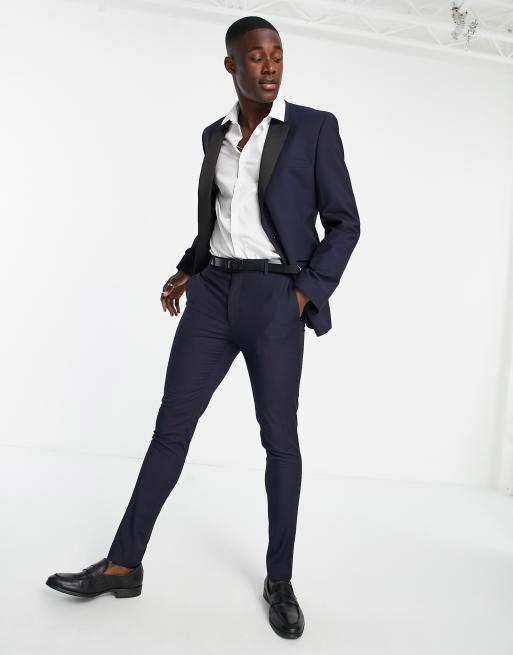 Pantalones de traje estilo esmoquin azul marino ajustados de ASOS DESIGN