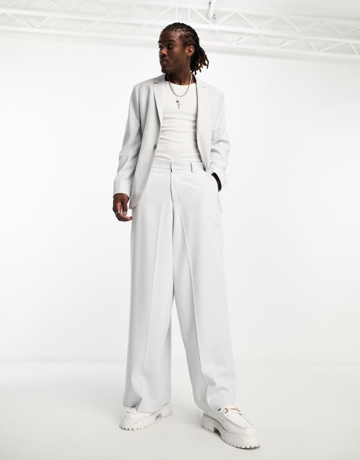Pantalones de traje gris medio de pernera ancha de tejido microtexturizado de ASOS DESIGN