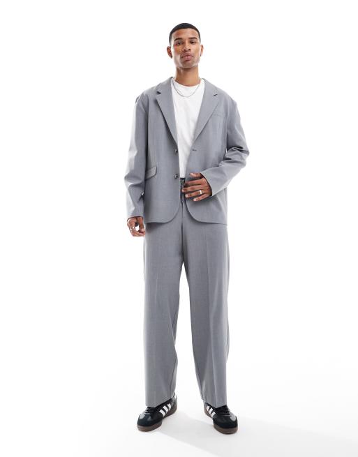 Pantalones de traje grises sin cierres de pernera barrel de ASOS DESIGN