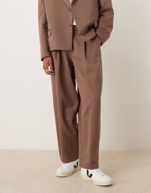 Pantalones de traje marrones de corte barrel de ASOS DESIGN