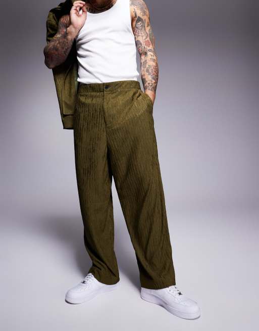 Pantalones de traje verde oliva de pernera barrel de tejido rugoso texturizado de ASOS DESIGN