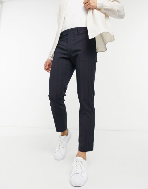 Pantalones de vestir azul marino a rayas finas ajustados por encima del tobillo de ASOS DESIGN