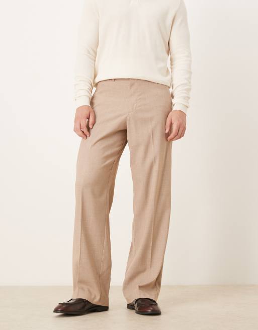 Pantalones de vestir beis jaspeado de pernera ancha con pinzas de ASOS DESIGN