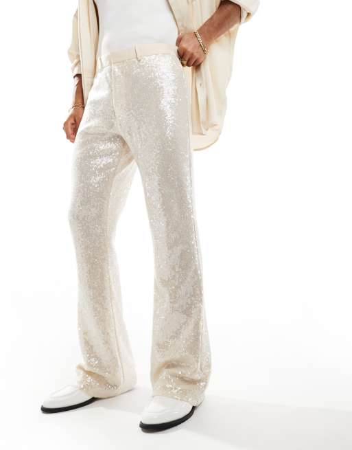 Pantalones de vestir blancos de corte acampanado de lentejuelas de ASOS DESIGN