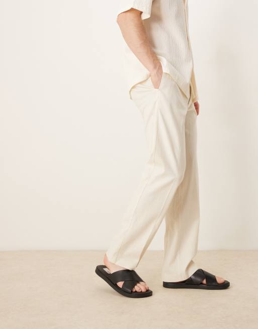 Pantalones de vestir blancos de pernera recta de mezcla de lino de ASOS DESIGN