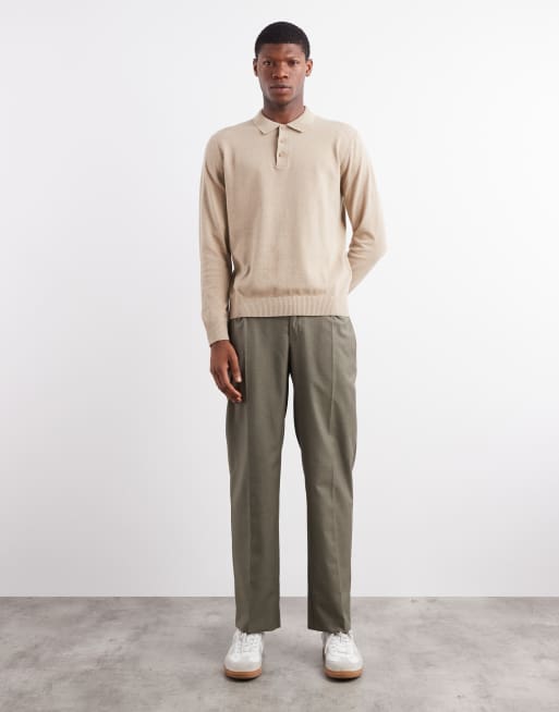 Pantalones de vestir caquis de pernera recta con pinzas dobles de ASOS DESIGN