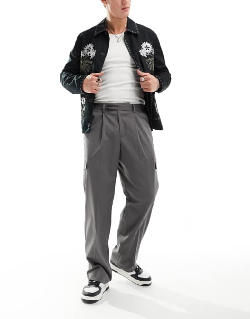Pantalones de vestir cargo grises de pernera ancha de ASOS DESIGN