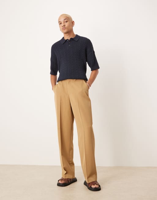 Pantalones de vestir color camel de pernera ancha con bolsillo de estilo carpintero de ASOS DESIGN