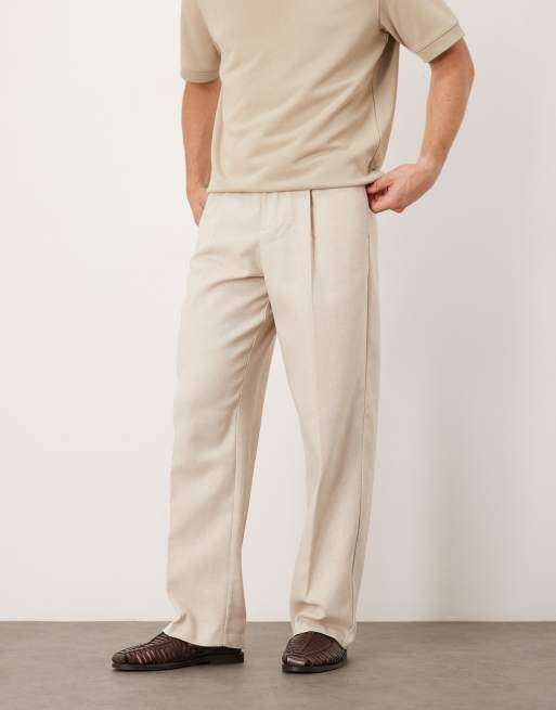 Pantalones de vestir color piedra de pernera ancha con pinzas de ASOS DESIGN