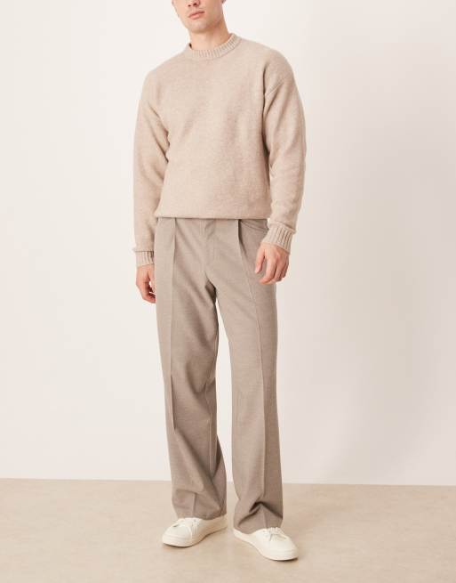 Pantalones de vestir color piedra de pernera ancha con pinzas de franela de ASOS DESIGN