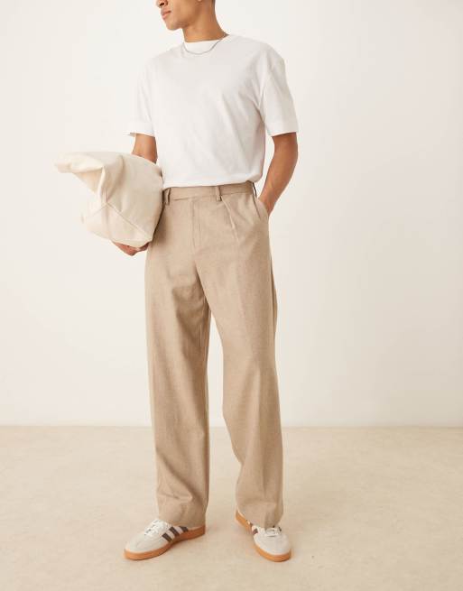 Pantalones de vestir color piedra de pernera ancha con pinzas delanteras de mezcla de lana de ASOS DESIGN