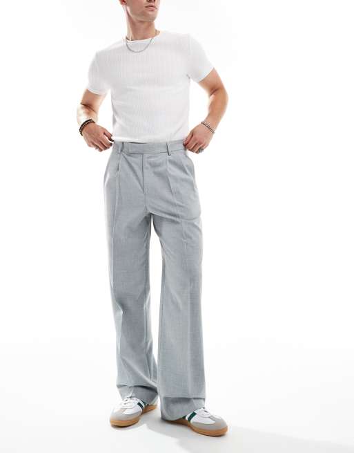 Pantalones de vestir gris claro melange de pernera ancha con pinzas dobles de ASOS DESIGN