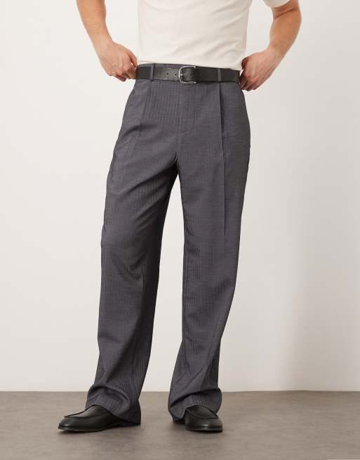 Pantalones de vestir grises de pernera ancha con patrón de espiga, pinzas delanteras y cinturilla elástica de ASOS DESIGN
