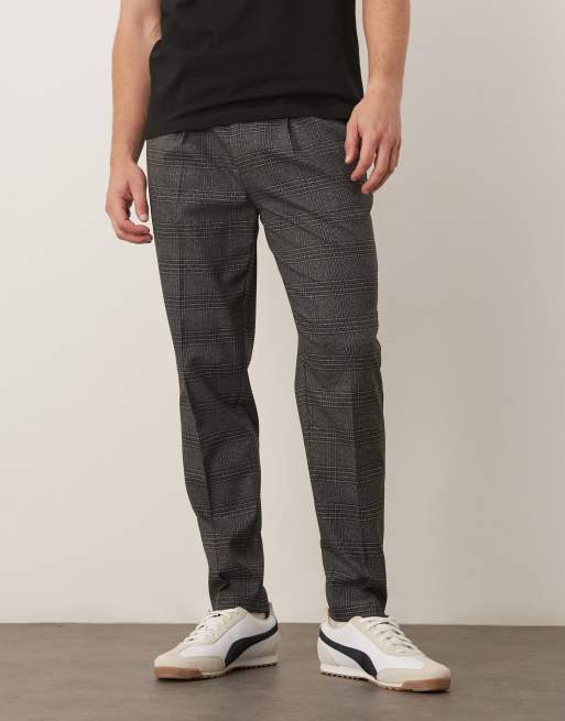Pantalones de vestir negros a cuadros de corte tapered con pinzas delanteras de ASOS DESIGN
