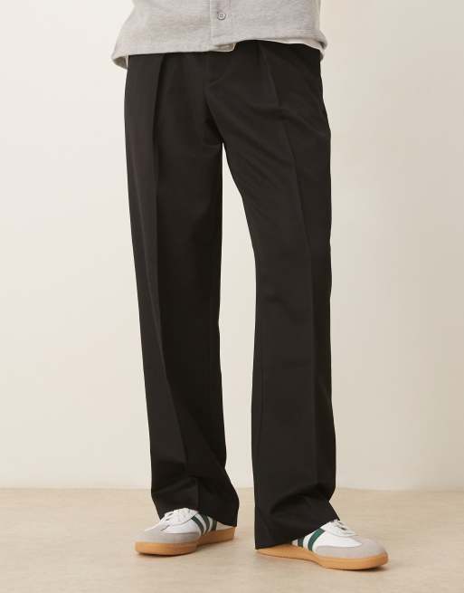 Pantalones de vestir negros de pernera ancha con cinturilla elástica y pinzas marcadas de ASOS DESIGN