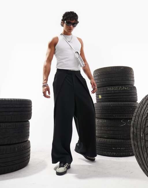 Pantalones de vestir negros de pernera ancha con pinzas pronunciadas de ASOS DESIGN