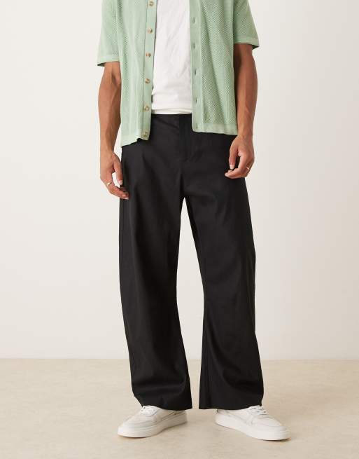 Pantalones de vestir negros de pernera barrel de lino de ASOS DESIGN